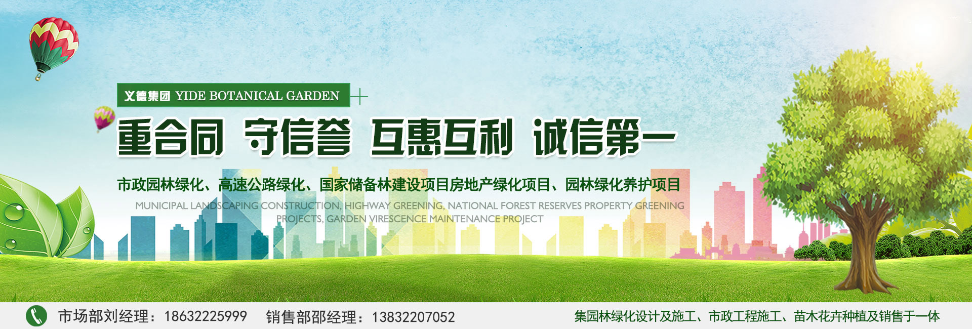 我公司本著重合同,守信譽(yù),互惠互利,誠(chéng)信第一的態(tài)度,踏實(shí)干事業(yè),契約必踐行的園林宗旨,逐步發(fā)展為今天集園林綠化設(shè)計(jì)及施工、市政工程施工、苗木花卉種植及銷售等綜合性園林綠化行業(yè)公司。